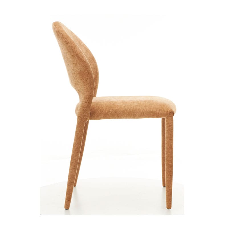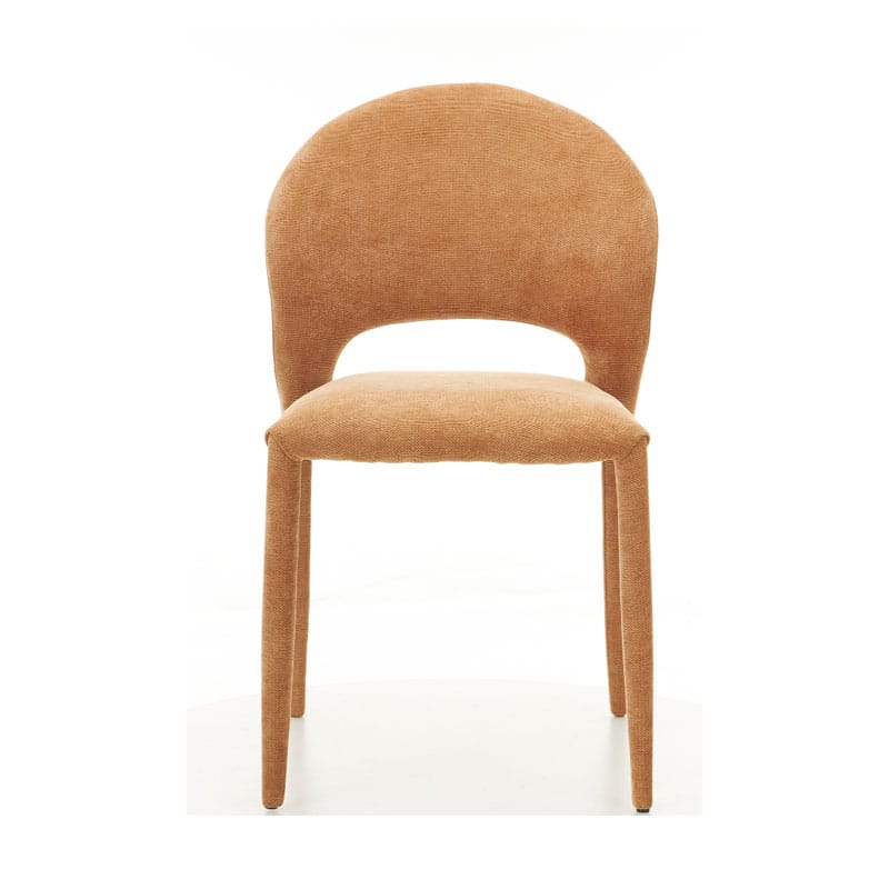 Its curved form envelops you in sculptural comfort, while the fabric saturated hue and subtle sheen create a focal point full of warmth and personality. This is a chair that doesn’t just complement a space—it defines it.