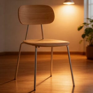 This dining chair features a sleek and tailored silhouette, with a well-proportioned structure for a cozy and stable seating experience. Its understated and elegant design fits perfectly in dining rooms and hotels, adding a subtle refined touch to any space.