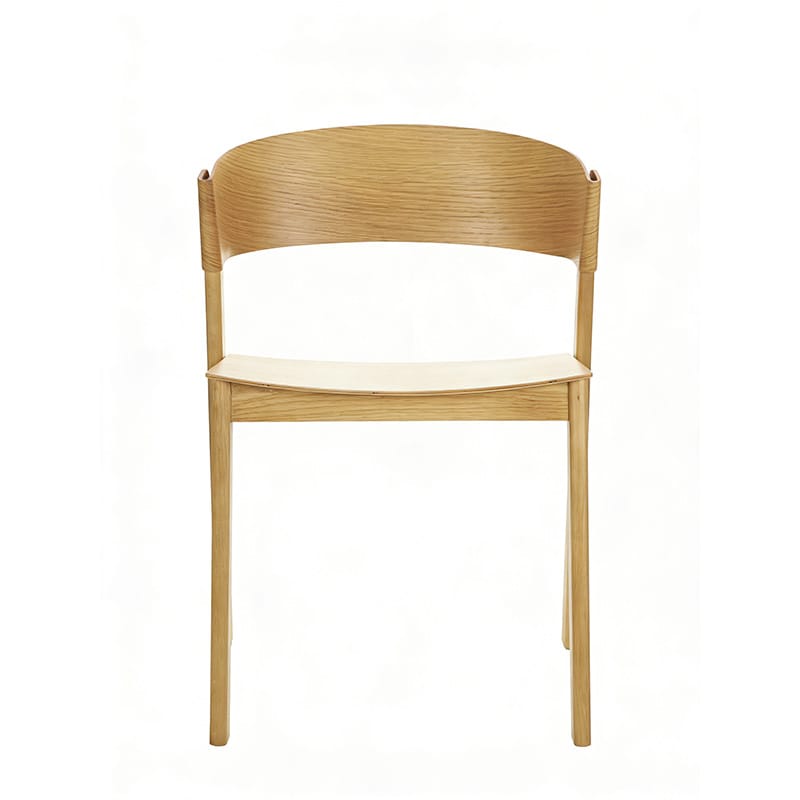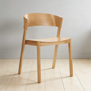 This light oak dining chair combines minimalist Scandinavian design with solid wood craftsmanship—its curved backrest and smooth seat offer subtle ergonomic comfort.